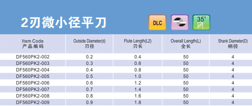 2刃微小徑深溝平刀